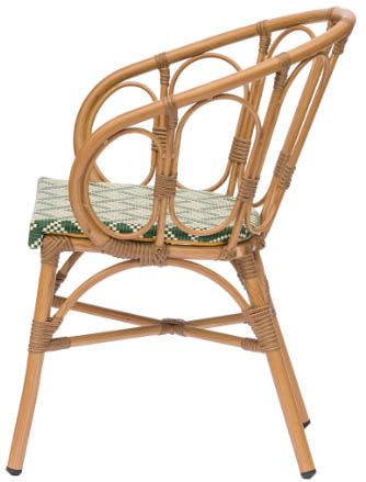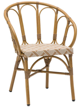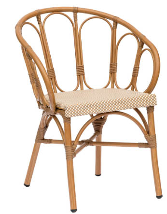 Silla exterior apilable. Estructura aluminio color deco bambu, asiento textilene.