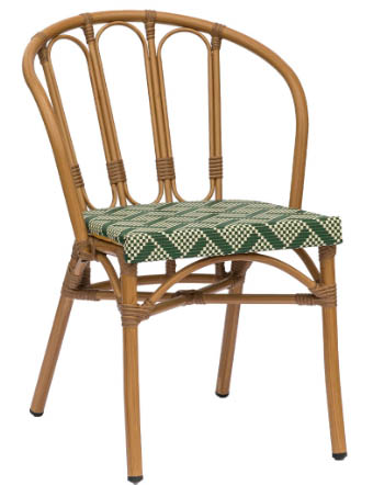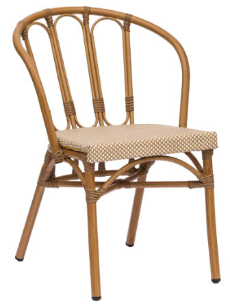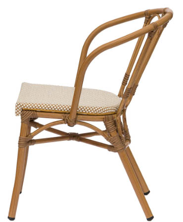 Silla exterior apilable. Estructura aluminio deco bambu, asiento textilene
