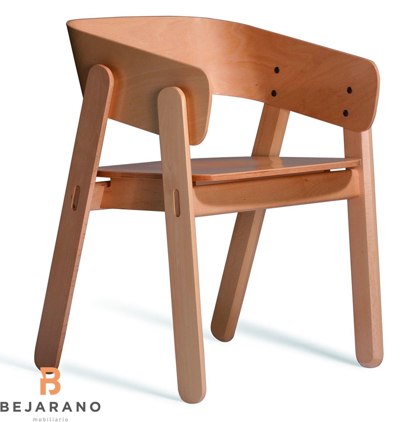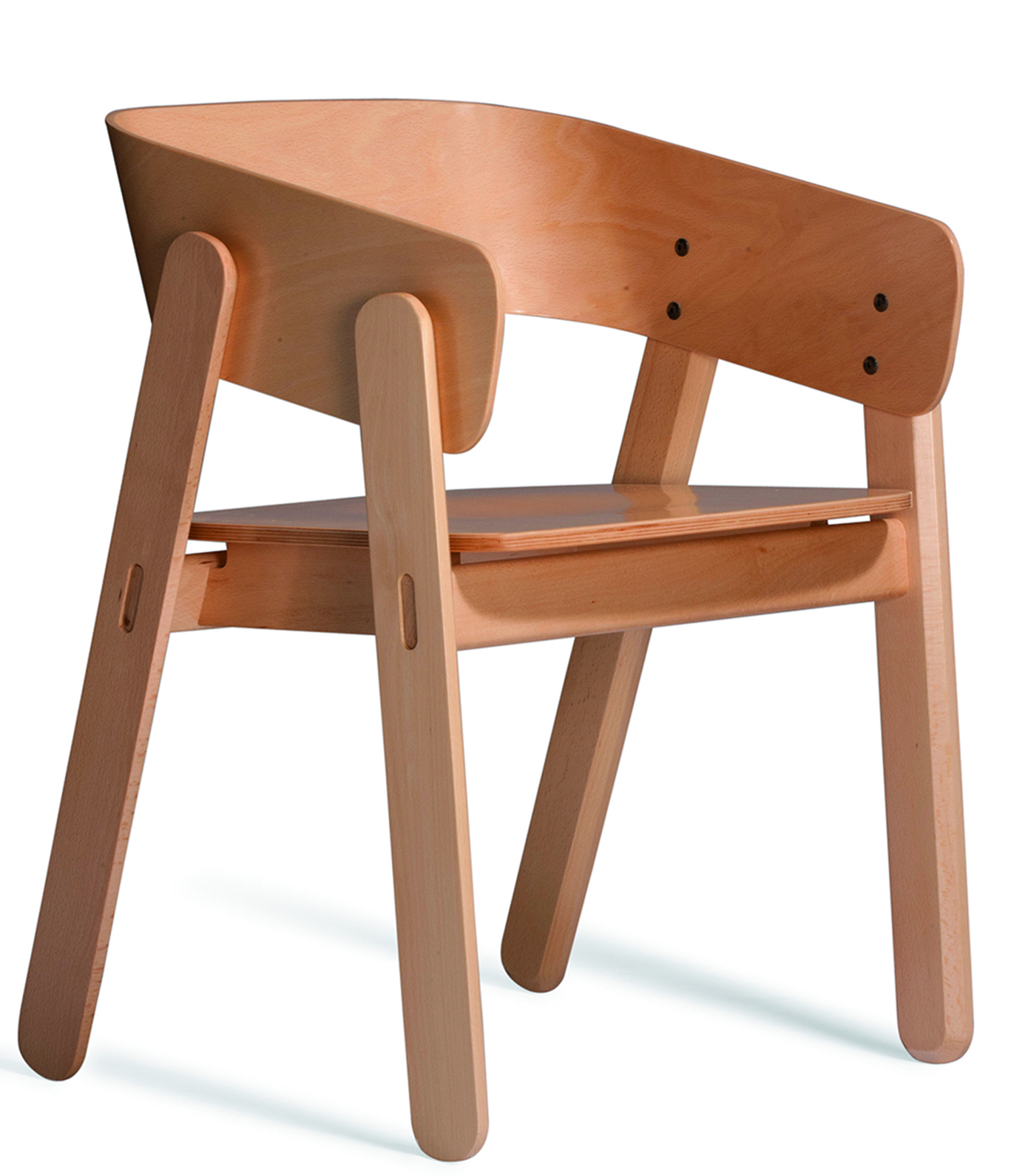 El acabado biselado, la curva especial del respaldo y la forma en la que están conectadas las piezas añaden valor a una silla sencilla y fácil de entender aunque cuidadosamente diseñada hasta el último detalle.